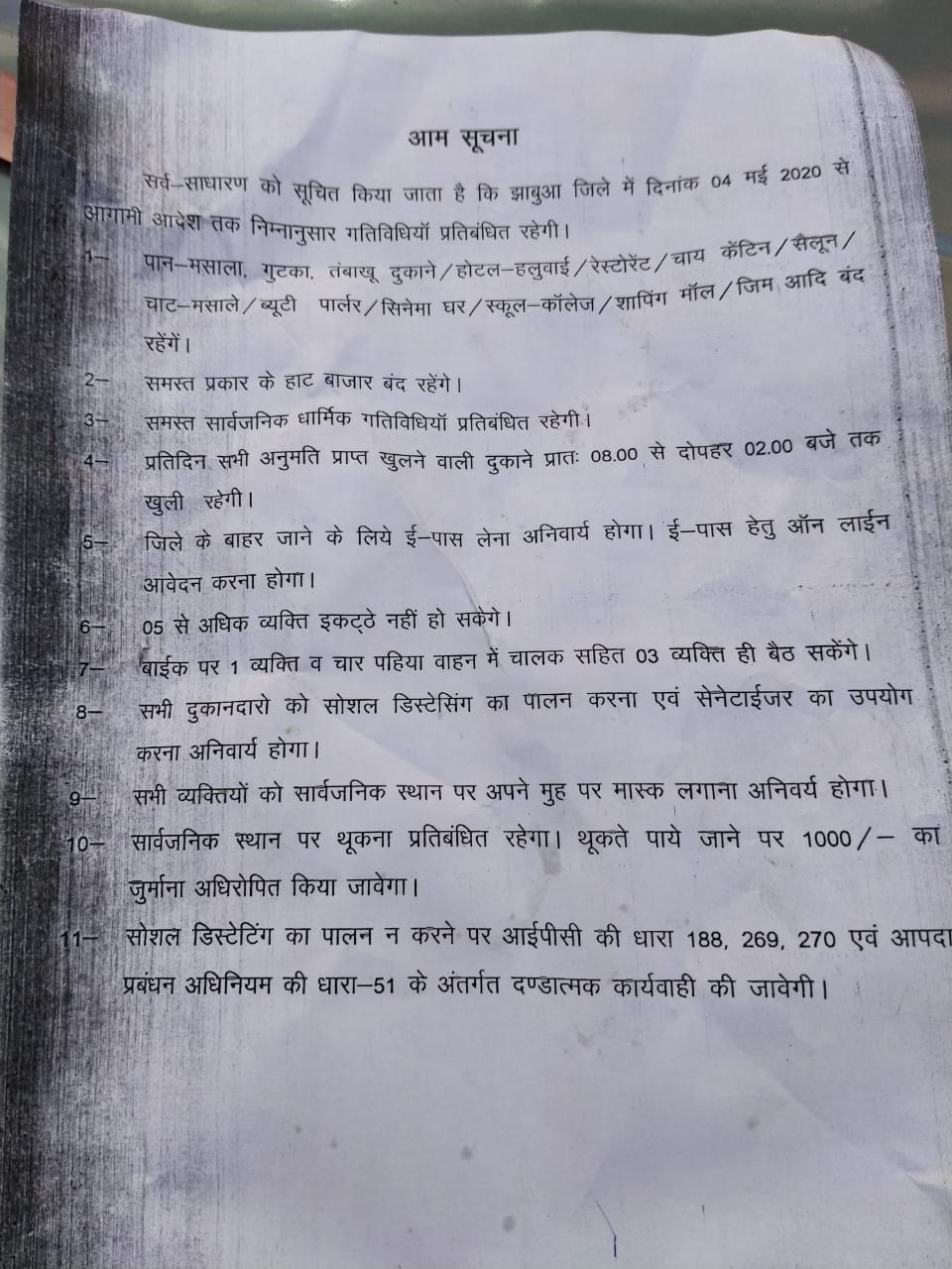 लॉक डाउन 3 के तहत सुबह 8 से 2 बजे तक मिली छूट के बाद सोमवार सुबह व्यापारियों में असमंजस की स्थिति दिखाई दी। व्यपारी दुकान खोलने को लेकर एक दूसरे से इस संबंध में जानकारी लेते दिखाई दिए। छूट के दौरान प्रतिबंधित दुकानों और खुलने वाली दुकानों के लिए आवश्यक दिशा निर्देश की प्रति प्राप्त होने पर स्थानीय पुलिस प्रशासन ने पूरे ग्राम में अनाउंसमेंट कर ग्रामीणों को जानकारी दी। पुलिस चौकी प्रभारी वीरेंद्र सिंह चौहान ने ग्राम में अनाउंसमेंट करते हुए बताया कि ताजा प्राप्त निर्देशों के अनुसार 4 मई से आगामी आदेश तक पान मसाला, गुटखा, तम्बाकू दुकान, होटल, हलवाई, रेस्टोरेंट, चाय केंटीन, सेलून, चाट मसाला, ब्यूटी पार्लर, सिनेमा घर, स्कूल-कॉलेज, शॉपिंग मॉल, जिम आदि बन्द रहेंगे। इस दौरान हाट बाजार और धार्मिक गतिविधियां प्रतिबंधित रहेंगी। साथ ही अनुमति प्राप्त दुकाने सुबह 8 से दोपहर 2 बजे तक ही खुली रहेगी। सभी दुकानों पर सोशल डिस्टेंसिंग का पालन करना, सेनेटाइजर का उपयोग अनिवार्य रहेगा। निर्देशों के अनुसार एक साथ पांच व्यक्ति से ज्यादा इक्कठे नहीं हो सकेंगे। सभी को मास्क लगाना अनिवार्य होगा। एक बाइक पर एक व्यक्ति और चार पहिया वाहन में ड्राइवर सहित तीन व्यक्ति ही बैठ सकेंगे। जिले से बाहर आने जाने के लिए ई पास अनिवार्य रहेगा। पुलिस द्वारा किए गए अनाउंसमेंट में बताया गया कि सार्वजनिक स्थान पर थूकने पर एक हजार रुपए का जुर्माना लगाया जाएगा। साथ सोशल डिस्टेंसिंग का पालन नहीं करने पर आईपीसी की धारा 188, 269, 270 एवं आपदा प्रबंधन अधिनियम की धारा 51 के अंतर्गत दंडात्मक कार्यवाही की जाएगी।