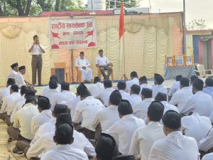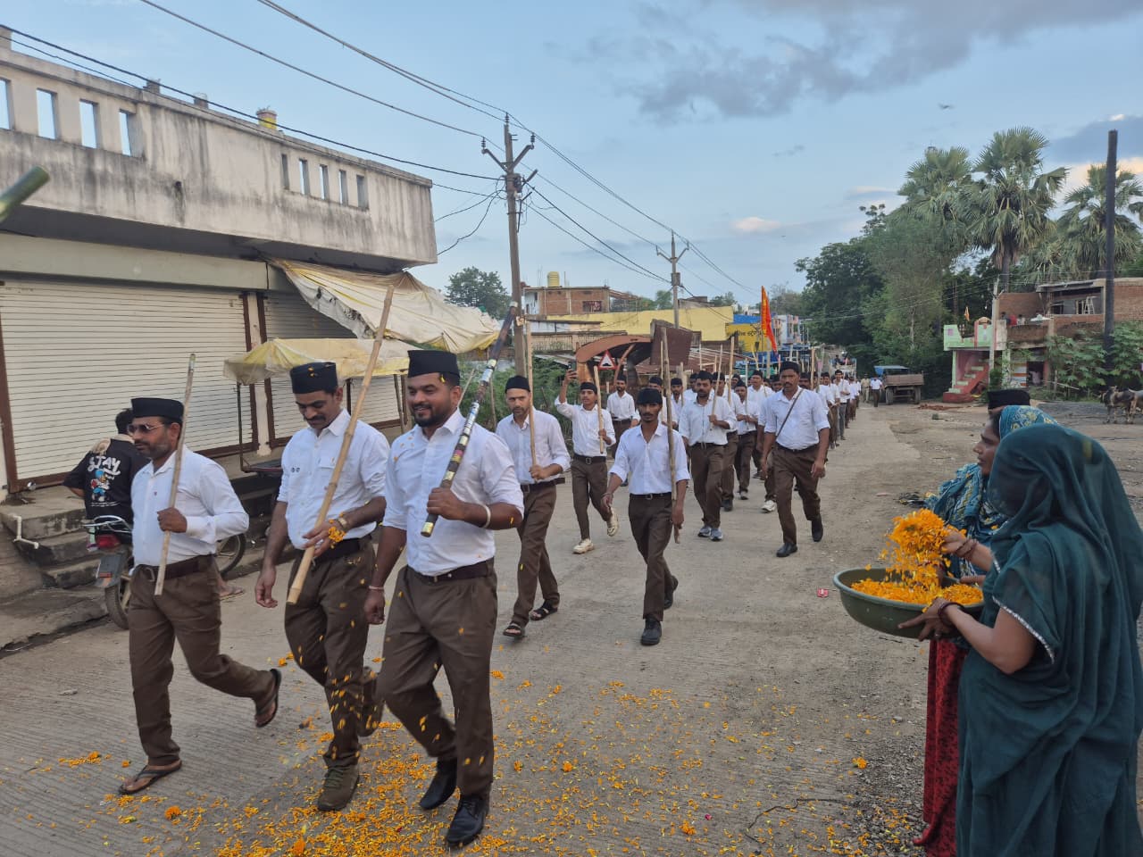 वालपुर (सोंडवा) । राष्ट्रीय स्वयंसेवक संघ के शताब्दी कार्य वर्ष के अंतर्गत शनिवार को वालपुर मंडल में भव्य पथ संचलन निकाला गया। संघ के 100 वर्ष पूर्ण होने के अवसर पर आयोजित इस पथ संचलन में स्वयंसेवकों ने संघ वेशभूषा में अनुशासित रूप से कदमताल करते हुए नगर भ्रमण किया। रास्ते में अनेक स्थानों पर ग्रामवासियों द्वारा पुष्पवर्षा कर गर्मजोशी से स्वागत किया गया। पथ संचलन स्कूल परिसर से प्रारंभ होकर डही रोड, बस स्टैंड, सोंडवा रोड होते हुए नगर मार्ग से गुजरते हुए स्कूल प्रांगण में पहुँचा जहां कार्यक्रम का समापन हुआ।
