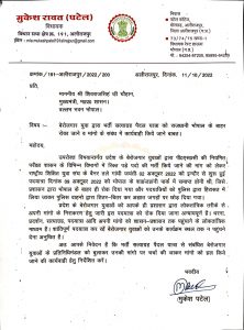 विधायक पटेल ने बेरोजगार युवा द्वारा भर्ती सत्याग्रह पैदल यात्रा को भोपाल के बाहर रोका जाने व मांगो के संबंध में कार्यवाही को लेकर मुख्यमंत्री को सौंपा पत्र