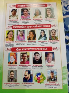 यह सम्मान मेवाड़ महाराणा नाथद्वारा विधायक विश्वराज सिंह तथा श्रीनाथ मंदिर प्रमुख आचार्य विद्व समारोह अध्यक्ष कृष्ण कुमार रत्तू के करकमलों से हुआ। विशेष अतिथि मेवाड़ महाराणा नाथद्वारा विधायक विश्वराज सिंह, संस्था प्रमुख अध्यक्ष वीपी सिंह, उपाध्यक्ष केतन मोदी , कविवर ओमपाल सिंह निडर, कारगिल रिटायर्ड ऑफिसर सिंह कानपुर, फ्लाइंग रिटायर्ड ऑफिसर सिंह, आगरा कवियित्री डॉ. ज्योत्सना शर्मा रही। संचालन सूत्रधार राष्ट्रीय कवि गिरीश विद्रोही ने किया। इस अवसर पर काव्य पाठ आयोजन भी हुआ।