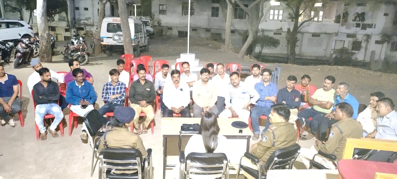 साथ साथ होली एवं होली के बाद होने वाली गोट प्रथा को लेकर के अनेक मुद्दों पर सभी सर्व समाज से आम सहमति अनुसार अच्छे और सुसंस्कृत तरीके से उत्सव आयोजन की पहल को सभी के द्वारा स्वीकृति प्रदान की गई । पुलिस प्रशासन ने सभी त्योहारों पर पूर्ण सुरक्षात्मक कदम उठाने के साथ सभी ग्रामीणों से व शांति समिति ,ग्राम सुरक्षा समिति के सदस्यों से सहभागिता का आह्वान किया ।इस अवसर पत्रकार संघ के सभी सदस्य, सरपंच, पंच एवं बड़ी संख्या में जनप्रतिनिधि व ग्रामीण उपस्थित थे ।अंत में आभार सब इंस्पेक्टर चंचला सोनी ने वयक्त किया।