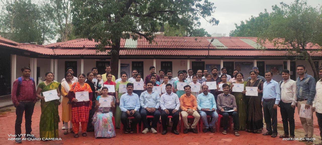 चार दिवसीय प्रशिक्षण का समापन हाई स्कूल एवम् हायर सेकेण्डरी स्कूल में विज्ञान प्रयोगशालाओ के सुदृढ़ीकरण की दृष्टि से विज्ञान शिक्षक , विज्ञान प्रयोगशला का काम देख रहे विज्ञानशिक्षको को प्रयोगशाला कार्य हेतु जिला स्तर पर चार दिवसीय प्रशिक्षण चंद्रशेखर आजाद विज्ञान पार्क में संपन हुआ l भोपाल से प्रशिक्षण लेकर आए मार्गदर्शक शिक्षक नारायण सिंह डुडवे द्वारा भोज्य पदार्थों में कार्बोहाइड्रेट ,वसा ,प्रोटीन , डीएनए पृथककरण , स्टोमेटा की अस्थायी स्लाइड बनाना, रक्त समूह परीक्षण, ब्लड प्रेशर नापना,सिमुलेशन के द्वारा ऑनलाईन प्रेक्टिकल करना l ड्राइंग शीट से अनेक गणितीय आकृतिया बनाना, एक्टिविटी के द्वारा प्रैक्टिकल करना सिखाया lभौतिक विज्ञान में मास्टर ट्रेनर ने वर्नियर कैलिपर्स , स्क्रू गेज, स्फीरोमीटर का रीस्ट काउंट और पाठ लेना सिखाया l प्रयोगों को सम्पन कराने में लोकेंद्र सिंह ठकराव , वेरसिंह सस्तिया, चंद्रसिंह चौहान का सहयोग रहा l प्रशिक्षण कार्यक्रम के समापन अवसर पर जिला शिक्षा अधिकारी श्री अर्जुनसिंह सोलंकीजी, एडी.पी.सी.श्रीरामानुज शर्मा जी एपीसी अविनाश वाघेला जी ने विज्ञान शिक्षको को अपने अपने विद्यालय में विज्ञान प्रयोगशाला का रख रखाव बेहतर तरीके से करने ओर विद्यार्थियों में विज्ञान के प्रति रुचि जागृत करने हेतु मार्गदर्शन दिया गया l और प्रमाण पत्रों का वितरण किया lप्रशिक्षण प्राप्त करने वाले शिक्षकों ने कहा इस तरह के प्रशिक्षण अत्यंत लाभकारी है हम प्रायोगिक कार्य को ज्यादा कुशलता और दक्षता के साथ अपने विद्यालयों में करा सकेंगे l