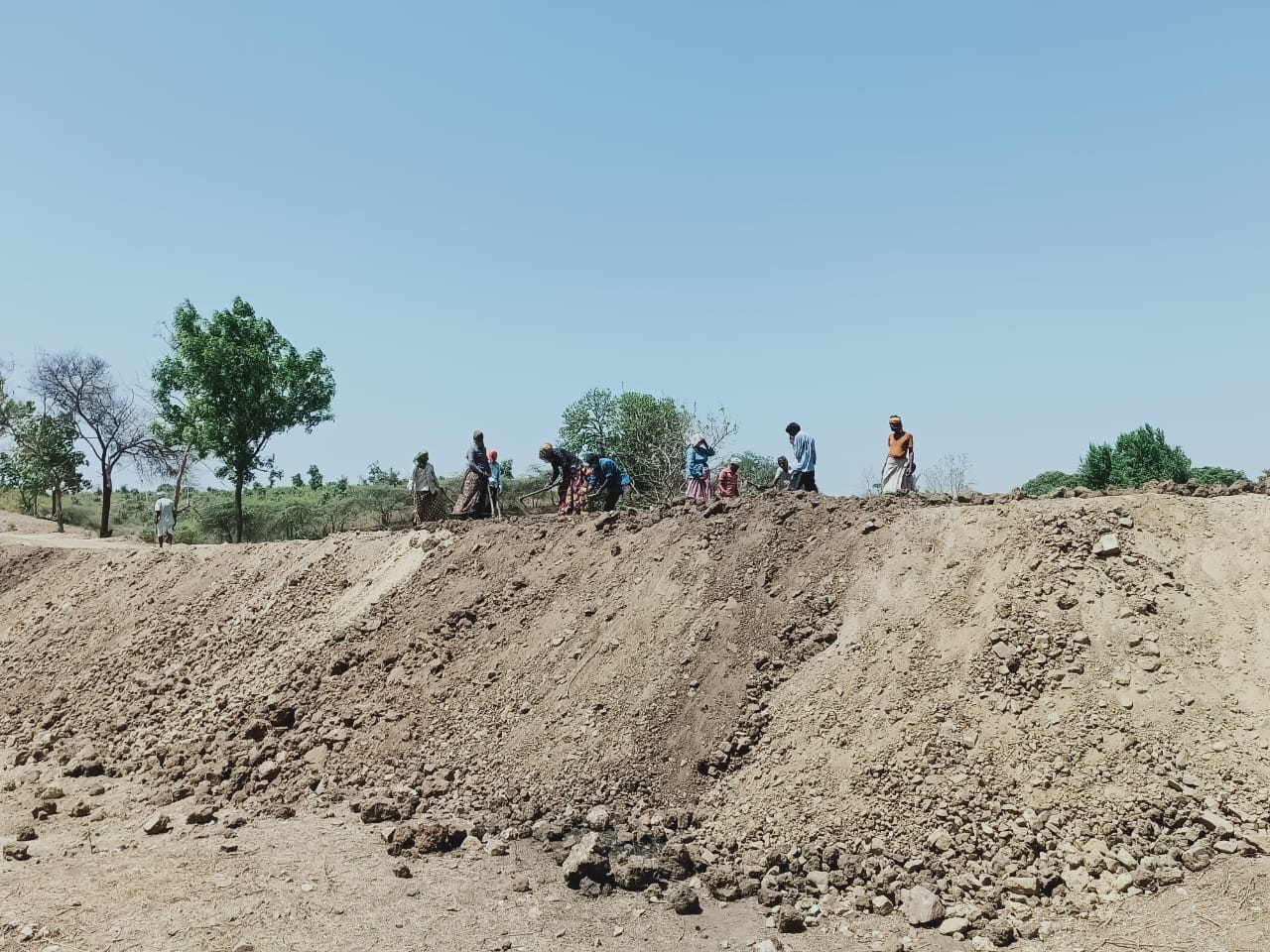 मध्यप्रदेश सरकार ने महात्मा गांधी रोज़गार गारंटी योजना में पूरे देश में सबसे अधिक मज़दूरों को काम देने का दावा किया है। साथ ही मेघनगर विकासखंड की ग्राम पंचायत राम्भापुर में मज़दूरो को 190 रुपये प्रतिनदिन के हिसाब से 100 दिनों का कार्य मनरेगा, कपिलधारा एवं अन्य योजना के तहत मजदूरों को सोशल डिस्टेंसिंग का पालन करवाते हुए कार्य करवाया जा रहा है। मनरेगा रोजगार गारंटी योजना के अंतर्गत तालाब का निर्माण किया जा रहा है जिसकी लागत ग्यारह लाख रुपए है एवं इसकी इजेंसी ग्राम पंचायत रभापुर के माध्यम से हो रही है यह 12/05/2020 से प्रारंभ हो गया है। जिसके प्रारम्भ में मजदूरों की संख्या 35 एवं आज शनिवार को देखने पर मजदूर की संख्या 190 है जिसमें पुरुष 80 एवं महिला 110 कार्य कर रही है जिससे प्रतीत होता है कि महिला सशक्तिकण आज भी विद्यमान है इस तालाब के कार्य के समय 9 बजे से लगातार 5 बजे तक किया जा रहा है जिसमें दोपहर 1 से 2 बजे तक भोजन अपने अपने घर से सुबह से ही लाकर करते है । तालाब का निर्माण जुनी रंभापुर जिसमें घरों कि संख्या 110 अधिक निवास रत हे नए तालाब का निर्माण होने से यहां पर सिंचाई योजना को लाभ एवं आस पास के क्षेत्र सिंचित होने से यहां के रहवासियों को कृषि में लाभ मिलेगा । यह मजदूर गेती पावडे, एवं तगारे जो मजदूर अपने घर से लेकर आते है एवं खनन कर तालाब की पाल बनाकर यह कार्य कर रहे है उन्हीं मजदूरों में से दस मजदूर हैंडपंप से पानी लाकर दूसरे मजदूरी की प्यास बुझाते हे एवं इस कार्य में सरपंच सचिव व रोजगार सहायक की अहम भूमिका है एवं प्रतिदिन हाजरी का लेखा जोखा पंचायत रख रही है एवं प्रतिदिन की मजदूरी 190 रुपए हे जाब कार्ड के माध्यम से इन मजदूरों को मजदूरी पर रखा गया है यह रुपया मनरेगा से निकलेगा तो इनको मजदूरी प्रदान की जाएगी !