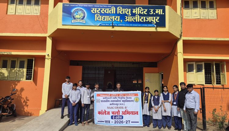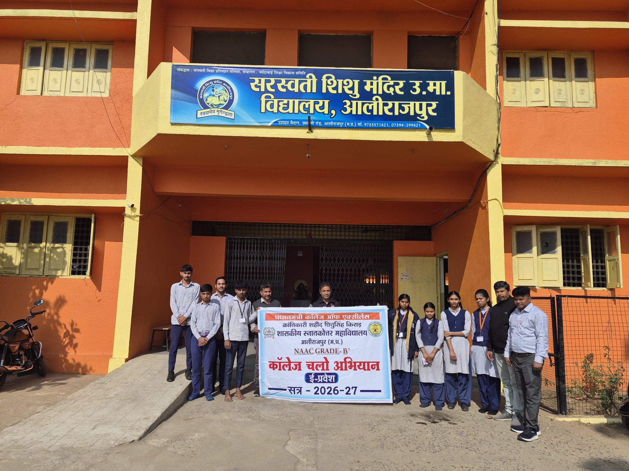 आलीराजपुर। प्रधानमंत्री कॉलेज ऑफ़ एक्सीलेंस, क्रांतिकारी शहीद छितु सिंह किराड़ शासकीय स्नातकोत्तर महाविद्यालय आलीराजपुर से कॉलेज चलो अभियान का दल  सरस्वती शिशु मंदिर उच्चतर माध्यमिक विद्यालय आलीराजपुर में 12वीं  में अध्यनरत विद्यार्थियों को उच्च शिक्षा विभाग में प्रवेश प्रक्रिया की जानकारी दी गई ।