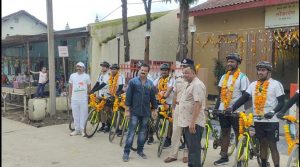 1703 किलोमीटर की दूरी तय कर 2 अक्टूबर, गांधी जयंती पर समाधि स्थल राजघाट पहुंचकर महात्मा गांधी को श्रद्धासुमन अर्पित करेंगे। जिसकी शुरुआत अमर शहीद चंद्रशेखर आजाद की जन्मस्थली से साईकिल रैली को रतलाम-झाबुआ-आलीरापूर सांसद गुमानसिंह डामोर, पूर्व विधायक व सांसद प्रतिनिधि माधौसिंह डावर, भाजपा जिला अध्यक्ष वकीलसिंह ठकराला, पूर्व भाजपा जिला अध्यक्ष राकेश अग्रवाल, पूर्व भाजपा जिला महामंत्री अजय जायसवाल,नपा अध्यक्ष निर्मला डावर व एसडीएम किरण आंजना द्वारा हरी झंडी दिखाकर रवाना की गई।