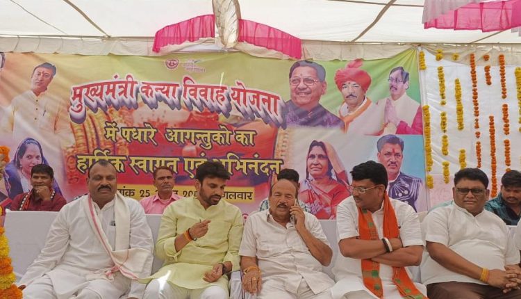 आलीराजपुर। मुख्यमंत्री कन्यादान योजना के अंतर्गत आज 131 नवयुगल दंपत्ति के विवाह कार्यक्रम मैं शामिल हुए। जोबट विधानसभा के कट्ठीवाड़ा विकासखंड में मुख्यमंत्री कन्यादान योजना के अंतर्गत भारतीय जनता पार्टी के प्रदेश उपाध्यक्ष नागर सिंह चौहान व मध्य प्रदेश वन विकास निगम कैबिनेट मंत्री दर्जा प्राप्त माधव सिंह डावर, विधायक प्रतिनिधि विशाल रावत, भदु भाई पचाया, पूर्व मंडी अध्यक्ष भूपेंद्र डावर, ने शासन की कई योजनाओं की जानकारी देका लाभ लेने का आह्वान किया।