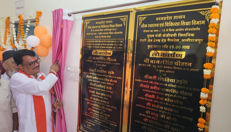 आलीराजपुर। कैबिनेट मंत्री नागर सिंह चौहान एवं कलेक्टर डॉ. अभय अरविंद बेडेकर ने अलीराजपुर में 25 लाख की लागत से निर्मित मुख्यमंत्री संजीवनी क्लिनिक साथ ही 147 लाख की लागत से निर्मित उप स्वास्थ्य केन्द्र टोकरिया , झीरण , सीयाली और भांडाखफड का लोकार्पण किया । मंत्री श्री चौहान ने शहरी क्षेत्र में मूलभूत स्वास्थ्य सुविधाएं पहुंचाने से बने इस संजीवनी आरोग्य केंद्र का लोकार्पण कर निर्मित चिकित्सा कक्ष , इंजेक्शन कक्ष , जांच कक्ष सहित अन्य कक्षाओं का निरीक्षण किया । उन्होंने बताया कि इस केंद्र के माध्यम से आकास्मिक एवं मूलभूत स्वास्थ्य सुविधाएं लोगो तक तीव्रता से पहुचेगी एवं शासन की योजनाओ का लाभ भी प्राप्त होगा । कैबिनेट मंत्री श्री चौहान एवं कलेक्टर डॉ बेडेकर ने अपना स्वास्थ्य परीक्षण भी कराया ।