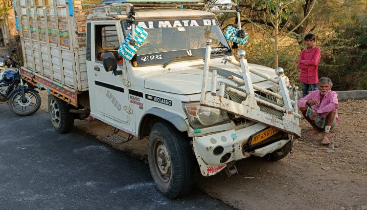 पुलिस की गाड़ी एवं डीजे की गाड़ी को टक्कर मार भाग रहा था पिकअप चालक, पुलिस ने पकड़ा