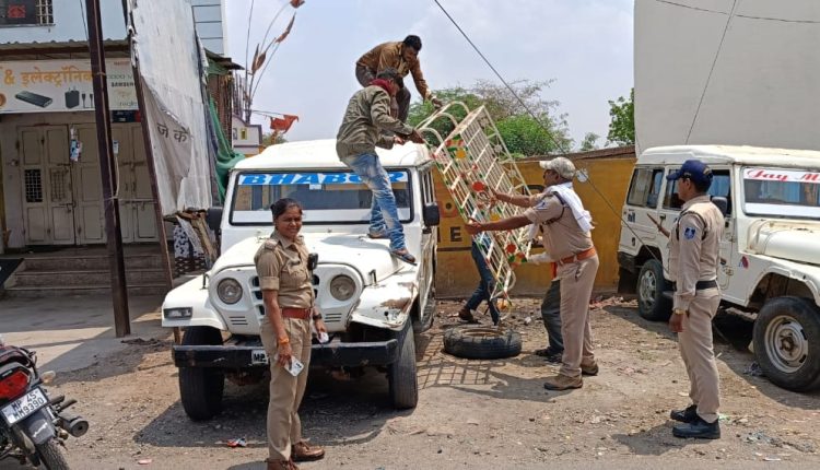 ओवर लोडिंग सवारी बिठाने वाले वाहनों के पिटोल पुलिस ने केरियर हटवाए