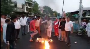 रायपुरिया के झाबुआ चौराहे पर कांग्रेस के कार्यकर्ताओं ने विधायक वालसिंह मेडा के नेतृत्व में सीएम शिवराजसिंह चौहान का पुतला दहन किया और नारेबाजी की । जिस समय कांग्रेस के कार्यकर्ता सीएम शिवराजसिंह चौहान का पुतला दहन कर रहे उस समय चौराहे पर समीप ही डायल 100 भी खड़ी थी । कांग्रेस कार्यकर्ताओं ने जलते पुतलो को लातो से मारा और शिवराज सरकार हाय हाय के नारे लगाए।