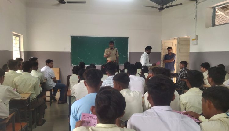 पुलिस अधीक्षक हंसराज सिंह के निर्देशन में चलाए जा रहे सड़क सुरक्षा के तहत विशेष अभियान के तहत विद्यार्थियों को समझाइश दी गई। इस अवसर पर आज़ाद नगर थाना प्रभारी विक्रम धारवे ने उत्कृष्ट विद्यालय में छात्र-छात्राओं को यातायात के नियमों का पालन करने काे कहा। उन्होंने कहा कि अपने माता-पिता को भी यातायात के नियमो के बारे में बताए कि ओवरलोड वाहनों में सफर ना करें। दो पहिया वाहनों में भी दो से अधिक लोग बैठकर सफर ना करें। इतना ही नहीं उन्होंने हेलमेट पहनने की बात कही जब आप या आपके माता-पिता दो पहिया वाहन चलाए तो हेलमेट जरूर पहने ओर अन्य लोगो को भी हेलमेट पहनने की सलाह दे ओर यातायात नियमो का पालन करें। जिला यातायात प्रभारी सूबेदार सुभाष सतपाडिया ने आज़ाद नगर उत्क्रष्ट विद्यालय में छात्र-छत्राओं को यातायात नियमो के बारे में समझाईस दी गई।