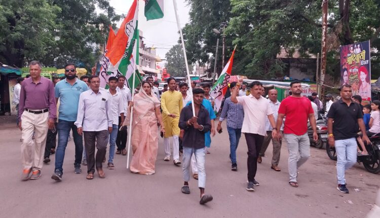 आलीराजपुर । अभा कांग्रेस कमेटी के राष्ट्रीय नेता एवं सांसद राहुल गांधी द्वारा देशभर में निकाली गई भारत जोड़ो यात्रा के तहत पदयात्रा की पहली वर्षगांठ पर अभा कांग्रेस कमेटी एवं मप्र कांग्रेस कमेटी के निर्देशानुसार जिला कांग्रेस कमेटी द्वारा गुरुवार को पदयात्रा निकाली गई । पदयात्रा में शामिल कांग्रेसी नेता एवं कार्यकर्ताओं ने कांग्रेस पार्टी जिंदाबाद, राहुल गांधी जिंदाबाद के गगनभेदी नारे लगाए। पदयात्रा में विधायक मुकेश पटेल, नगर पालिका अध्यक्ष सेना महेश पटेल एवं जिला कांग्रेस अध्यक्ष ओमप्रकाश राठौर सहित बड़ी संख्या में कांग्रेस नेता एवं कार्यकर्ता उपस्थित थे।