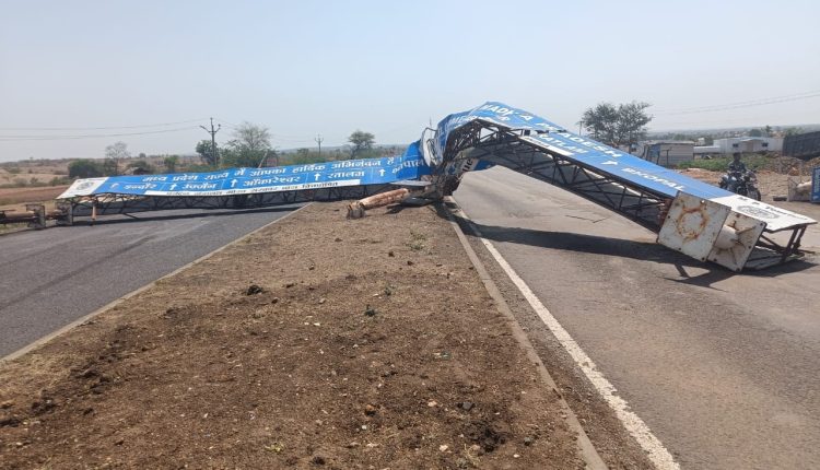 तेज आंधी नहीं झेल पाया पर्यटन विभाग का संकेतक बोर्ड, नेशनल हाईवे के बीच गिरा