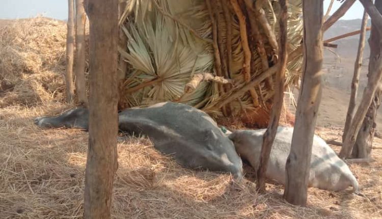 आकाशीय बिजली गिरने से दो बैल की मौत