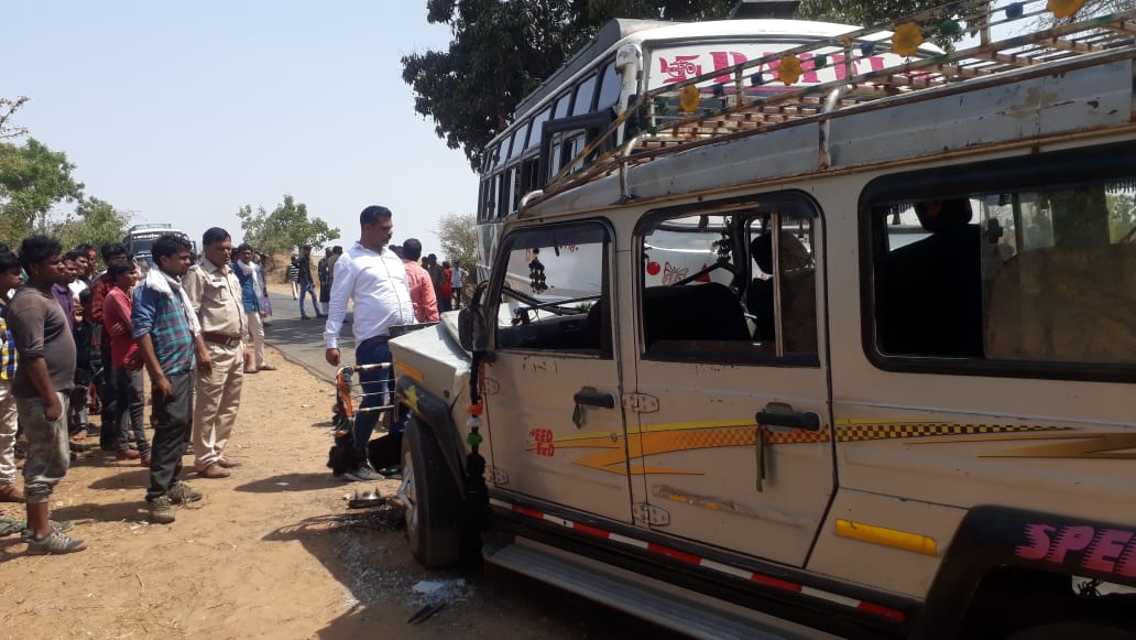 तूफान जीप-बस भिड़ंत में पांच लोग घायल