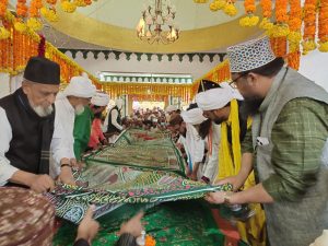 युवाओं का समूह साढ़े सात मीटर की चादर को उठाकर चल रहा था। हुसैनी मस्जिद होते हुए जुलूस मेन रोड से बंदीछोड़ दरगाह पहुंचा, यहां चादर पेश की। इसके बाद बस स्टैंड होते हुए शाम करीब साढ़े चार बजे सभी हजरत नवगज वली (रेअ) की मजार पर पहुंचे जहां पर चादर और संदल पेश किया गया। पश्चात लंगर हुआ, जिसमें बड़ी संख्या में समाजजनों ने सहभागिता की।