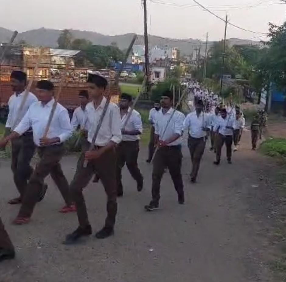 आरएसएस ने निकाला पथ संचलन, स्वयं सेवकों का जगह-जगह स्वागत किया