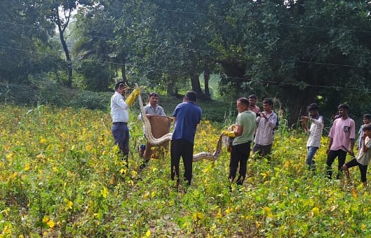 ग्रामीणों के सहयोग से वन विभाग ने पकड़ा 15 फीट लंबा अजगर