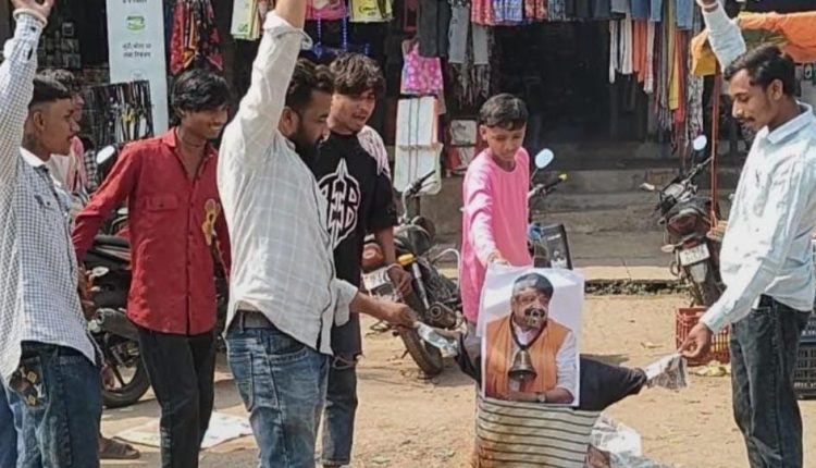 चंद्रशेखर आज़ाद नगर में युवक कांग्रेस का उग्र प्रदर्शन, कैलाश विजयवर्गीय का पुतला दहन