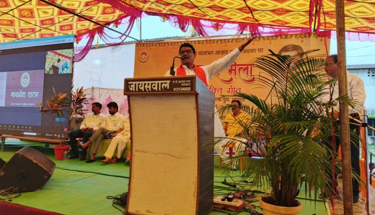 शहीद चंद्रशेखर आजाद की जयंती पर हुए कार्यक्रम में शामिल होने कैबिनेट मंत्री नागर सिंह चौहान पहुंचे। उन्होंने कहा अभी महिला समूह महिला समझो हमारी बहनें हैं उनके पति के नाम से जमीन है उनके पिताजी के नाम से जमीन है उनके लिए एक योजना बनाई और उसमें मुख्यमंत्री जी ने कहा है कि एक एकड़ जमीन अगर कोई पौधे लगाना चाहता तो उसके लिए मुख्यमंत्री जी ने नाम क्या दिया एक बगिया मां के नाम क्या नाम दिया है।