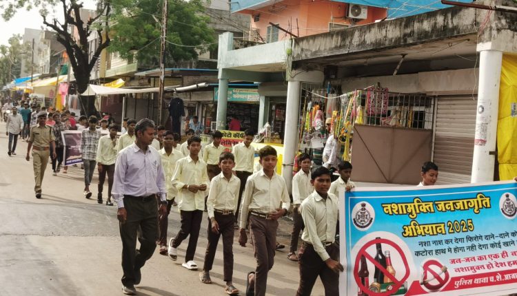 पुलिस मुख्यालय भोपाल के निर्देशानुसार पुलिस अधीक्षक राजेश व्यास द्वारा समस्त पुलिस थाना क्षेत्र में नशा मुक्ति अभियान के निर्देश दिए गए हैं। इसी कड़ी में आज चंद्रशेखर आजाद नगर में भी पुलिस  थाना प्रभारी चंद्रशेखर आजाद नगर शिवराम तरोले के मार्गदर्शन में एक रैली निकाली गई।