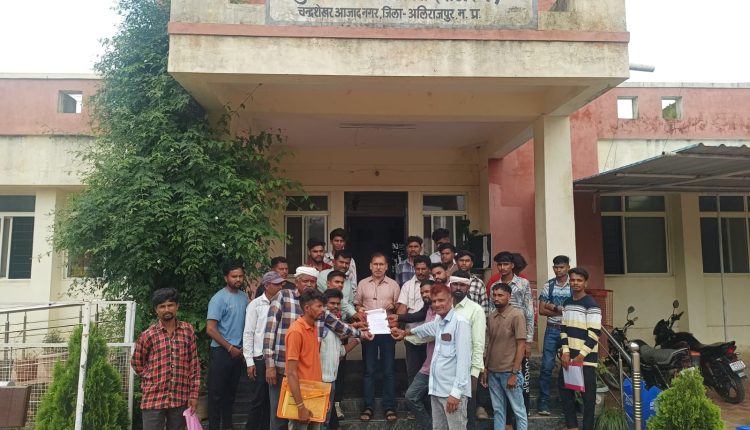 भील प्रदेश मुक्ति मोर्चा के पदाधिकारी द्वारा आज चंद्रशेखर आजाद नगर एसडीम कार्यालय पर तहसीलदार जितेंद्र तोमर ज्ञापन दिया गया जिसमें विशेष रूप से मुख्य मांग रखी गई।