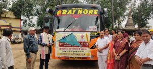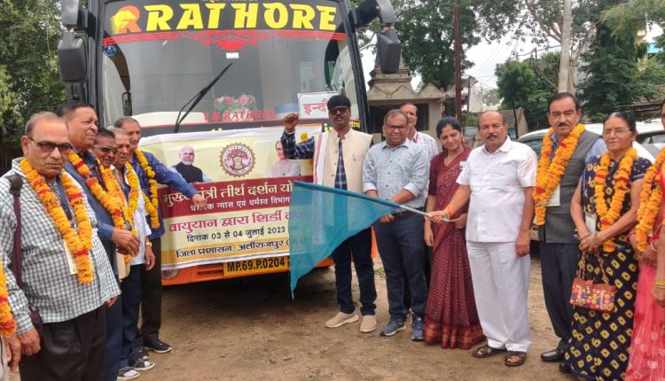 चन्द्रशेखर आज़ाद नगर। मुख्यमंत्री तीर्थ यात्रा योजना के अंतर्गत जाने वाले यात्रियों को कैबिनेट मंत्री माधौसिंह डावर व जनपद अध्यक्ष इंदरसिंह डावर ने तीर्थ यात्रियों की बस को हरी झंडी दिखाकर किया रवाना। नगर परिषद अध्यक्ष निर्मला डावर भी मौजूद रही। सभी तीर्थ यात्री आज़ाद नगर जनपद पंचायत परिषर में एकत्रित हुए। जहाँ से यात्रियों को बस के द्वारा इंदौर के लिए रवाना किया गया। जिसमें आज़ाद नगर से 12 तीर्थ यात्रियों के साथ अलीराजपुर जिले से कुल 33 यात्री बस से इंदौर के लिए रवाना हुए। बस द्वारा इंदौर ऐयरपोर्ट छोड़ा जाएगा तीर्थ यात्री बाय प्लेन से शिर्डी पहुचेंगे।