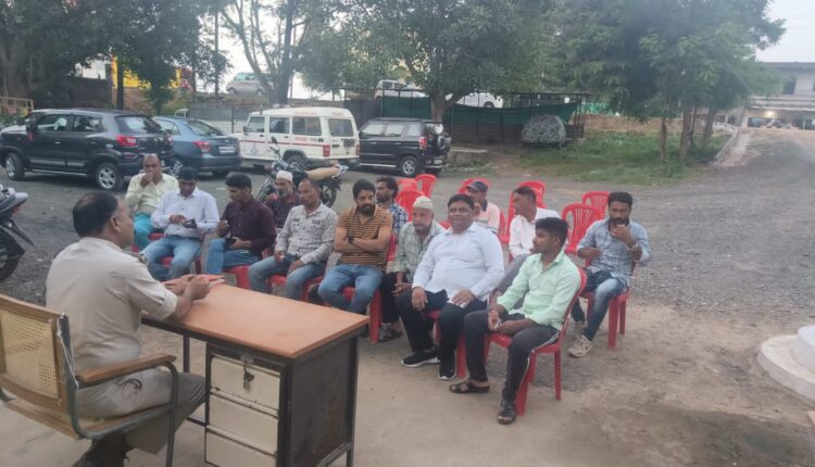 आगामी त्योहार दि.6 ओर 7 सितम्बर में होने वाले 40वे मोहर्रम व जन्माष्टमी पर्व को लेकर चर्चा की गई। थाना प्रभारी गोपाल परमार ने नगरवासियों से अपील करते हुए कहा कि नगर में शांति बनाए रखे और अपना त्यौहार शांति पूर्ण मनाए। जिले में धारा 144 सम्पूर्ण रूप से लगी हुई जिसका का पालन आप सभी करे सोशल मीडिया जैसे इंस्टाग्राम, फ़ेसबुक, व्हाटसप पर आपत्ति जनक पोस्ट करने से बचे ताकि किसी भी धर्म विशेष को ठेस ना पहुचे। लाऊड स्पीकर या डीजे पर अपने धर्म के प्रति ही गीत बजाए। नगर में अवैध गतिविधियों की सूचना तत्काल पुलिस को दे पुलिस द्वारा वैधानिक करवाई की जाएगी। पुलिस द्वारा नगर और साइबर टीम द्वारा सोशल मीडिया पर नजर रखे हुए है। बैठक की व्यवस्था मुकेश जमरा द्वारा की गई। बैठक में भूपेंद्र डावर, जि.यू.मोर्चा महामंत्री नरेंद्र परमार, पार्षद इशाक मकरानी, आदिल शेख, हुजैफा टेलर, विकास गणावा, नितिन शाह, त्रिलोक अखाड़िया, जाकिर एवं नगर के गणमान्य नागरिक मौजूद रहे।
