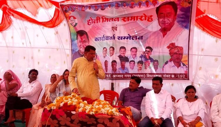अलीराजपुर | जिला कांग्रेस कमेटी के पूर्व अध्यक्ष महेश पटेल के नेतृत्व में शनिवार को जिले के चंद्रशेखर आजाद नगर में होली मिलन समारोह एवं कांग्रेस कार्यकर्ता सम्मेलन आयोजित किया गया | सम्मेलन में कांग्रेसी नेताओ, पदाधिकारीयों , कार्यकर्ता एवं मंडलम-सेक्टर प्रभारीयों ने शिरकत की | सम्मेलन में कांग्रेसी नेताओं ने आपसी मतभेद भुलाकर कांग्रेस संगठन को मजबूत बनाने पर जोर दिया | इस अवसर पर अलीराजपुर विधायक मुकेश पटेल, जिला कांग्रेस कमेटी अध्यक्ष केशरसिंह डावर, नपा अध्यक्ष सेना पटेल सहित बड़ी संख्या में कांग्रेसी नेता एवं कार्यकर्ता मौजूद थे |