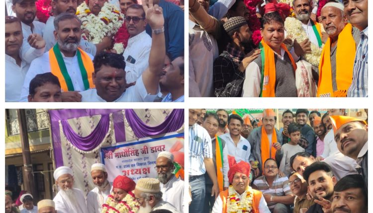 चन्द्रशेखर आज़ाद नगर। मध्य प्रदेश वन निगम मंडल के अध्यक्ष बने पर माधौसिंह डावर का नगर में भव्य जुलूस निकाला गया। केबिनेट मंत्री का दर्जा प्राप्त डावर को पार्षद इशाक मकरानी, डॉक्टर रियाज़ शेख व मुस्लिम समाज द्वारा काजू बादाम से तोला गया। जुलूस का नगर के हर एक चौराहे पर फूल माला से स्वागत कर फल फ्रूट से तोला गया।