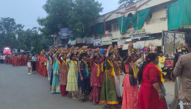 चंद्रशेखर आजाद नगर। नगर में 16 जून से 22 जून-2023 तक सांय- 7 से रात्रि 10 बजे तक चलने वाली सात दिवसीय गौ कथा के पहले दिन भव्य चल समारोह के साथ कलश यात्रा निकाली गई। यात्रा नगर के हनुमान मंदिर से नया बाजार, मुख्य बाजार, राम मंदिर, सोनी मोहल्ला होते हुवे कथा स्थल आजाद प्रांगण टाऊन हाल पहुंचा। जहा गौ रक्षक पूज्या कपिला गोपाल सरस्वती दीदी द्वारा गौ माता तथा व्यासपीठ का पूजन किया। इससे पहले हनुमान मंदिर पर तुलसी, कलश व ध्वजा पूजन के साथ हनुमान जी का आव्हान किया। भव्य चल समारोह के दौरान राम मंदिर प्रांगण में महिला भक्तों द्वारा गरबा किया गया। चल समारोह में नगर सहित आसपास के गांवों से भी बड़ी संख्या में गौभक्तों ने भाग लिया।