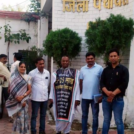 25-25 लाख रुपए के मुआवजे की मांग का बैनर पहनकर जिला पंचायत के साधारण सम्मेलन में पहुंचे डाबर
