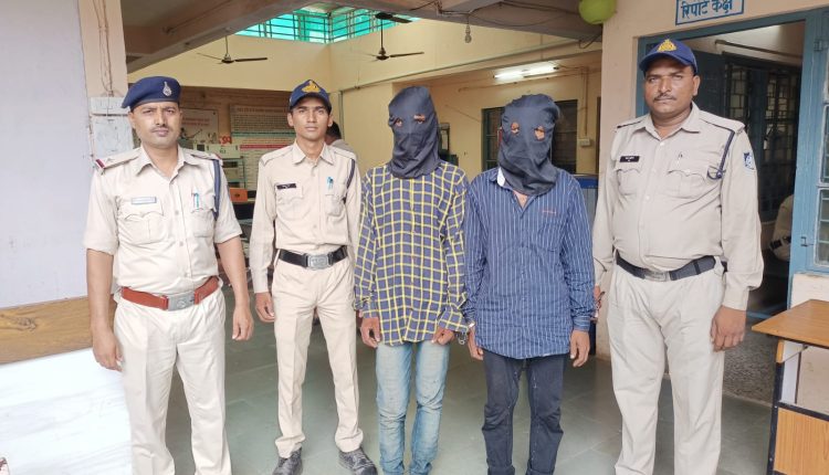 अपराध की गम्भीरता को देखते हुए पुलिस अधीक्षक महोदय श्री अगम जैन, अतिरिक्त पुलिस अधीक्षक महोदय श्री प्रेमलाल कुर्वे के मार्गदर्शन व अनुविभागीय अधिकारी (पुलिस) श्री सौरभ तोमर के निर्देशन में राधाकृष्ण मंदिर में हुई चोरी की पतारसी हेतु थाना प्रभारी पेटलावद राजुसिंह बघेल व उनकी पुलिस टीम द्वारा अज्ञात आरोपी की तलाश कई जगह की गई व CCTV फूटेज में दिखाई दिये हुलिये के लोगो की जानकारी लेने पर पता चला कि यह लोग गांव-गांव में जाकर भीख मांगकर खाने वाले ग्राम उदयगढ थाना थान्दला क्षेत्र के रहने वाले है, संदेहियों की तलाश हेतु थाने से लगातार पुलिस टीम द्वारा दबीश दी जाकर संदेही 01) संजय पिता राजेश भाट उम्र 32 वर्ष निवासी उदयगढ थाना थान्दला, 02) गुंगा पिता रामसिंह सिंगाडिया उम्र 40 वर्ष निवासी उदयगढ थाना थान्दला हाल मुकाम रेल्वे स्टेशन रतलाम को पकड़कर सघन पूछताछ की गई जिन्होने ग्राम करडा़वद में स्थित राधाकृष्ण मंदिर में चोरी करना बताया गया व एक अन्य आरोपी के नाम पते के संबंध में पूछताछ करते उनके द्वारा विजय पिता सुनिल चामठा निवासी उदयगढ का होना बताया जो वर्तमान में फरार चल रहा है। आरोपी संजय भाट व गुंगा सिंगाडिया को गिरफ्तार किया जाकर प्रकरण आरोपी संजय से एक चांदी की बांसुरी व आरोपी गुंगा से एक चांदी की चेन जप्त की गई।
