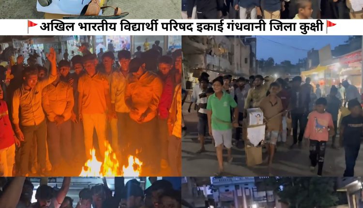 पश्चिम बंगाल गत अनेकों माह से महिला सुरक्षा से संबंधित घटनाएं हो रही है। ऐसे दुष्कर्मों में संलिप्त लोगों को बचाने का प्रयास पश्चिम बंगाल की ममता सरकार कर रही है। टीएमसी के गुंडों द्वारा भी ऐसे अनेकों दुष्कर्म पूर्व में किए गए परंतु उनके विरुद्ध में कोई भी कार्यवाही ममता सरकार द्वारा नही की गई। बंगाल में हो रही यह घटनाएं मानवता को शर्मसार करने वाली है। इन घटनाओं को ध्यान में रखते हुए व ममता सरकार के विरोध में आज गंधवानी इकाई द्वारा ममता बेनर्जी का पुतला जला कर ABVP पश्चिम बंगाल सरकार का विरोध प्रदर्शन किया गया। जिसमें नगर मंत्री माधव बघेल . नगर अध्यक्ष निवेश वानखेड़े और सभी ABVP कार्यकर्ता उपस्थित रहे..