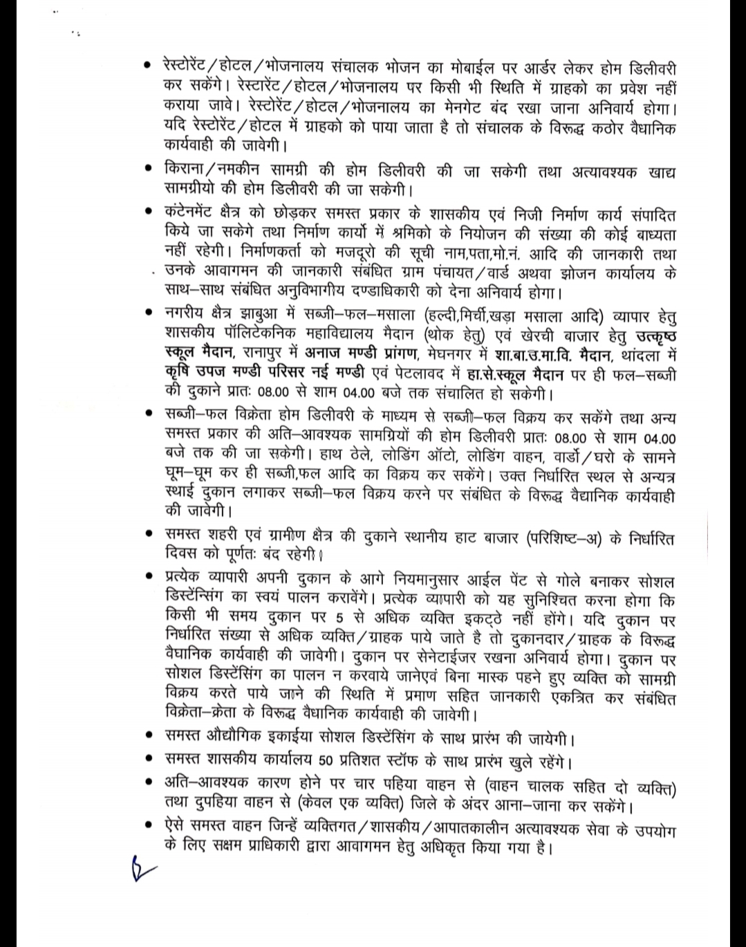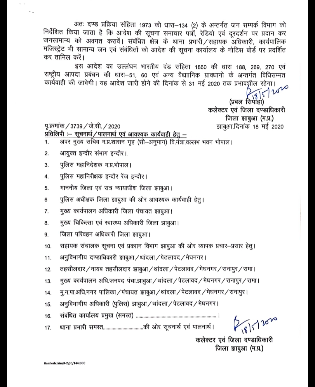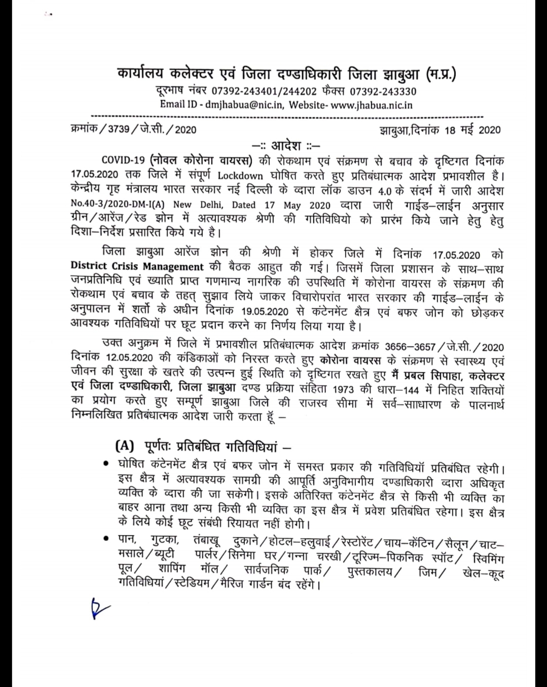झाबुआ जिले में किन-किन शर्तो से मिलेगी जिले में छूट; कलेक्टर ने जारी किया आदेश