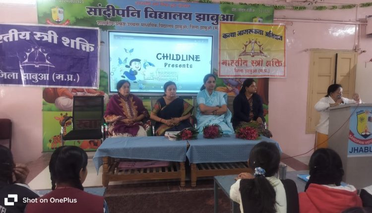 झाबुआ डेस्क। भारतीय स्त्री शक्ति द्वारा स्थानीय सांदीपनि उच्चतर माध्यमिक विद्यालय में छात्राओं के लिए कन्या जागरूकता के लिए विशेष आयोजन किया, जिसमें बालिकाओं को अपनी सुरक्षा के लिए किस प्रकार सतर्क रहना ,तथा शारीरिक स्वच्छता के महत्व के साथ ही उम्र के इस पड़ाव पर क्षणिक आकर्षण के भ्रम में ना पड़कर अपने कैरियर को फोकस करने जैसी बातों को रेखांकित किया गया।