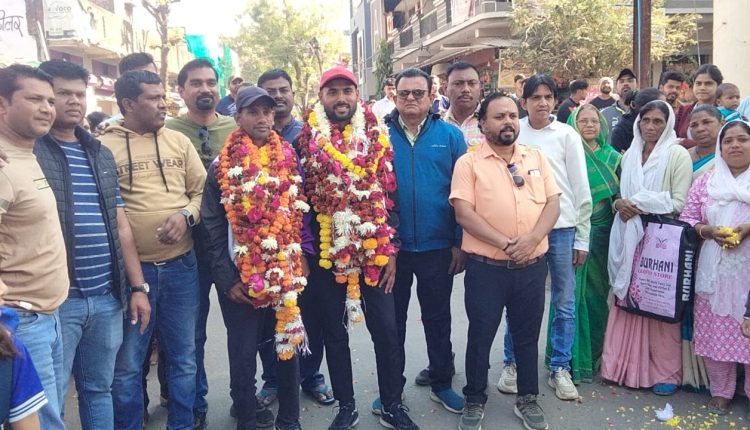 शहर के दो युवा 1800 किमी की पैदल यात्रा कर लौटे, समाजजन व समाजसेवियों ने किया स्वागत