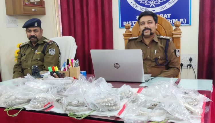 अज्ञात बदमाशों की धरपकड़ करने हेतु श्रीमान् पुलिस अधीक्षक मनोज कुमार सिंह के निर्देशन मे तथा श्रीमान् अतिरिक्त पुलिस अधीक्षक एसआर सेंगर के मार्गदर्शन में अनुविभागीय अधिकारी (पुलिस) अनुभाग जोबट नीरज नामदेव के निर्देशन मे थाना प्रभारी उदयगढ,अनसिंह भाबर उनि. सोबरनसिंह पाल, सउनि. खुमसिंह बारिया, सउनि.कंचनसिंह चौहान, सउनि. लक्ष्मणसिंह देवडा, सउनि. रामवीरसिंह सेंगर, आर. 535 तूफान डामोर, आर.458 रणसिंह, आर. 347 खेमसिंह, आर. 111 मुनसिंह, आर.209 तोलसिंह, आर. 414 मडिया, सैनिक 310 धर्मेन्द्र वाणी के द्वारा कडी मेहनत एवं लगन से आरोपीयों की पतारसी हेतु काफी प्रयास करने पर दिनांक 23.01.23 को मुखबिर की सूचना पर ग्राम छोटी जामली से दबिश देकर आरोपीयो को पकडा। जिनसे सख्ती से पूछताछ करने पर लूट की वारदात करना स्वीकार किया । आरोपीयों से लूटी गई 16 किलो 780 ग्राम चांदी के जेवरात किमती करीबन 1200000/- रूपये के बरामद किये गये एंव लूट मे उपयोग की गई मोटर सायकल बरामद की गई है।