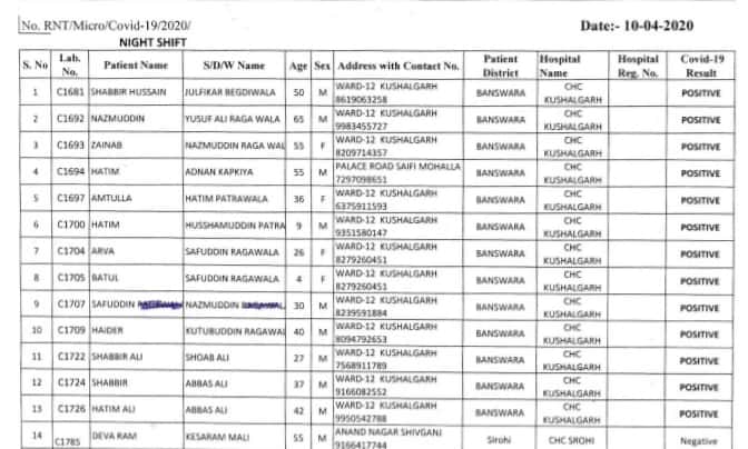 4 अप्रेल को कोरोना के प्रथम कहर में कुशलगढ़ के दो पिता पुत्र की रिपोर्ट पॉजिटिव आने से सम्पूर्ण बाँसवाड़ा जिले में हलचल मच गई थी क्योंकि तब तक पूरा जिला कोरोनो से मुक्त था । जिस महिला की मृत्यु हुई थी उसकी रिपोर्ट नेगेटिव थी व उसके पति व पुत्र की रिपोर्ट पॉजिटिव निकली थी उसके जनाजे व फातिमा पड़ने के बाद लगातार कोरोनाग्रस्त लोगो की संख्या में इजाफा होता गया व आंकड़ा 37 पर पहुच गया । उक्त महिला के परिजनों को चिकित्सालय में खाना पहुचाने में संपर्क में आए 3 व्यक्तियों की शिनाख्त कर उन्हें भर्ती कर जांच के नमूने लिये गए थे वही उनके अलावा बाँसवाड़ा बोहरा समाज के 6 व्यक्ति जो कुशलगढ़ आयोजन मे शामिल हुए थे वे भी जांच हेतु स्वयं चिकित्सालय जाकर भर्ती हो गए थे उनके भी नमूने जांच हेतु भेजे गए थे । इस जांच में वे सभी 10 व्यक्तियों की रिपोर्ट नेगेटिव आई है । इसमें वह प्रथम पॉजिटिव मृतक महिला के पति जुझर बोहरा भी शामिल है । उसके पुत्र की अभी दूसरी रिपोर्ट आने बाकी है । चिकित्सको के अनुसार यह सभी थर्ड स्टेज पर होने से कोरोना से मुक्त हो गए ।