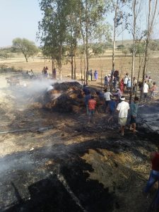 खलिहान में लगी आग से 100 क्विंटल गेहूं और 1 ट्रक भूसा जल कर खाक