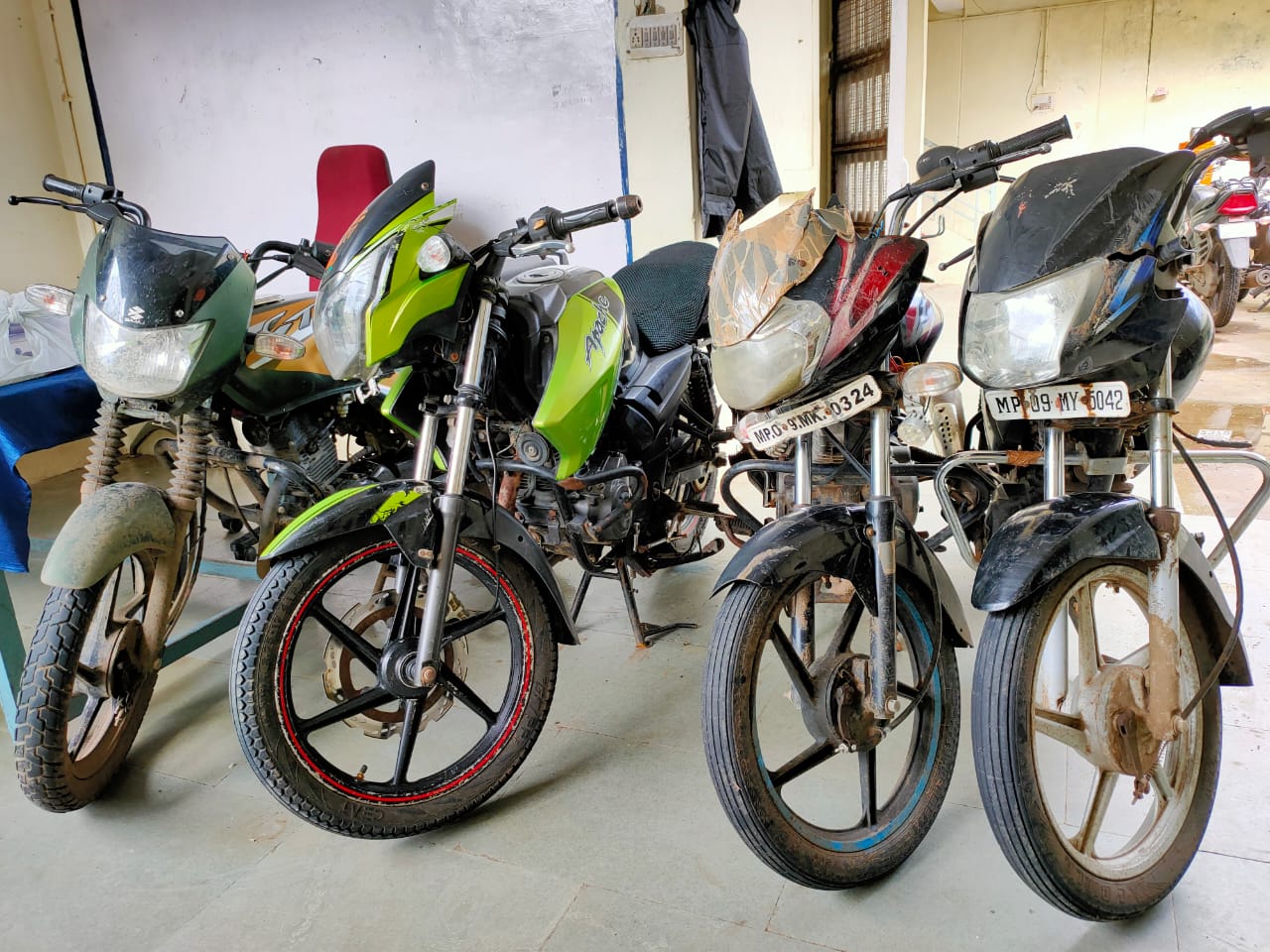 24 अगस्त को पेटलावद पुलिस टीम को मुखबिर ये सूचना मिली की करवड़ तरफ से चोरी की दो मोटर साइकिल पर तीन व्यक्ति आ रहे हैं। सूचना पर तत्काल नाकाबंदी की गई। कयडावद पेटलावद मार्ग के बीच एक व्यक्ति को बजाज 110 बाइक से रोककर पूछताछ करने पर अपना नाम दिनेश उर्फ जीवन पिता रामाजी पादरी निवासी दंगवाड़ा जिला उज्जैन होना बताया। आरोपी दिनेश की तलाशी लेने पर उसके कब्जे से एक देसी कट्टा व एक जिंदा कारतूत बरामद की गई एवं खामड़ीपाड़ा करवड़ तिराहे पर घेराबंदी कर 2 व्यक्ति को रोककर पूछताछ करने पर अपना नाम जितेन्द्र पिता रमेश मेड़ा निवासी दुलाखेड़ी, राकेश पिता रामा डामर निवासी नई बस्ती पेटलावद का होन बताया। आरोपियों की तलाशी लेने पर आरोपी जितेन्द्र से एक देसी कट्टा व एक जिंदा कारतूस जब्त किया गया। वहीं आरोपी राकेश डामर से अपाचे बाइक जब्त की गई। उक्त आरोपियों पर आम्र्स एक्ट की विभिन्न धाराओं के तहत अपराध कायम किया गया। आरोपयिों को थाने लाकर पूछताछ करने पर आरोपियो ने दोनों बाइक चोरी की होना बताया। वहीं आरोपियों की निशानदेही पर पुलिस ने दो अन्य चोरी की बाइक बरामद की है।