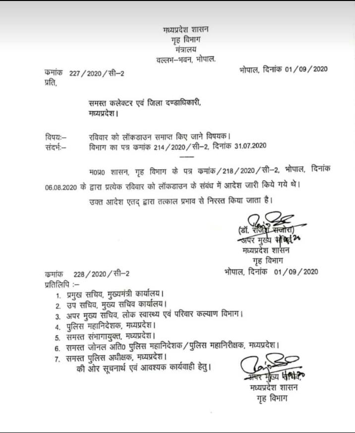प्रदेश एवं जिले के लोगों में इस बात को लेकर असमंजस है कि रविवार को लोग डाउन है या नहीं परंतु मध्यप्रदेश शासन गृह मंत्रालय से जारी पत्र क्रमांक 227/2020/सी -2 के अनुसार अब मध्यप्रदेश में रविवार को लोकडाउन नहीं रहेगा, ओर हफ्ते के सातों दिन व्यापारी अपने व्यवसाय कर सकेंगे। परंतु झाबुआ लाइव आप से अपील करता है कि लॉक डाउन जरूर हट गया है लेकिन व्यापार – व्यवसायी एवं ग्राहक अपने आप को सुरक्षित रखें, कोरोना कोने कोने में अपने पांव पसार चुका है, अब अपनी जिम्मेदारी स्वयं अपने हाथ में है।