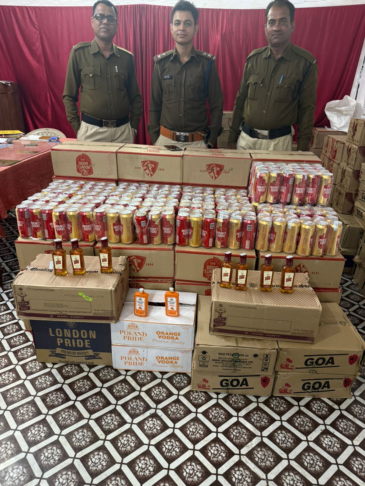 आबकारी विभाग द्वारा ग्राम कोकावद में सुने मकान से 2 लाख रुपये से अधिक की अवैध शराब जब्त