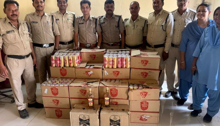 झाबुआ। जिले में अवैध मदिरा की बिक्री पर रोकथाम हेतु कलेक्टर झाबुआ नेहा मीना एवं श्री संजय तिवारी उपायुक्त संभागीय उड़नदस्ता इंदौर द्वारा सतत कार्यवाही हेतु दिये गये निर्देशों के परिपालन में मदिरा संग्रहण, परिवहन, चैर्यनयन एवं विक्रय के विरूद्ध बसंती भूरिया, ज़िला आबकारी अधिकारी झाबुआ के निर्देशन में  आज दिनांक 12.05.2025 को मुखबिर की सूचना पर आबकारी की संयुक्त  टीम द्वारा आबकारी वृत्त मेघनगर के ग्राम सातसेरा  तहसील मेघनगर में मुखबिर द्वारा बताये स्थान एक सुने पडे़ मकान की विधिवत तलाशी लेने  पर माउन्टस 6000  सुपर स्ट्रांग बियर कैन कुल 51 पेटी एवं मैकडावल व्हिस्की की 02 पेटी इस प्रकार कुल 53 पेटी  (कुल- 630 बल्क लीटर) विधिवत जप्त कर कब्जे आबकारी लेकर अज्ञात आरोपी के विरूद्ध मध्यप्रदेश आबकारी अधिनियम 1915 एवं संशोधित अधिनियम 2000 की धारा  34(1)(क), 34(2) के तहत प्रकरण पंजीबद्घ कर विवेचना में लिया गया उक्त कार्यवाही नवीन विधान के तहत विडियोग्राफी व फोटोग्राफी कि गयी। उक्त जप्त मदिरा का अनुमानित बाजार मूल्य राशि रुपये 1,51,320/- है।