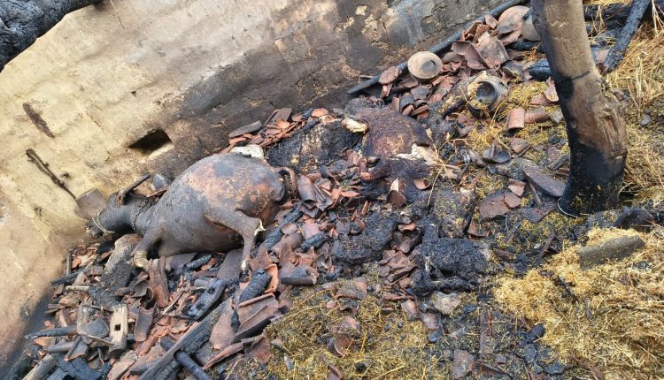 कल्याणपुरा थाना क्षेत्र के गाँव बिसोली में रमण पिता रामा एक किसान के कच्चे मकान में मंगलवार देर रात आग लग गई। जानकारी होने पर मौके पर पहुंचे ग्रामीण जब तक आग बुझाते तब तक करीब 8 पशुओं की मौत हो गई। जिसमे 2 भैंस 2 गाय 4 बकरी थी। साथ वहां गाय भेसो को खिलाने के लिए रखा चारा भी जल गया