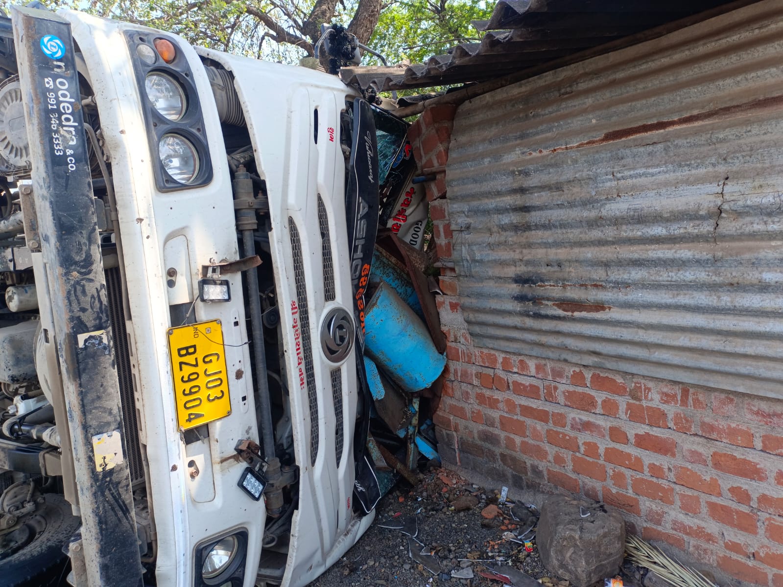 बीती रात झाबुआ जिले के ग्राम देवझिरी में एक ट्राला बिजली के तारों से भरा हुआ पलट गया । प्राप्त जानकारी अनुसार ट्राला क्रमांक Gj 03 bz 9904 ग्वालियर से बिजली के तार भर कर अहमदाबाद के लिए निकला था। बुधवार रात करीब 9.40 बजे ट्राला देवझिरी में जैन मंदिर के सामने असंतुलित होकर पलट गया और घसीटता हुआ रोड के समीप बने मकान में जा घुसा । ग्रामीणों ने बताया कि चालक काफी नशे में था। जब उसे अहमदाबाद जाना था तो वह हाईवे छोड़ कर झाबुआ जाने वाले रास्ते पर क्यों आया । ग्रामीणों ने तत्काल पुलिस को सूचना दी।