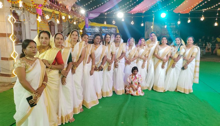 नवरात्रि के दौरान ड्रेस कोड में गरबा कर रही महिलाएं