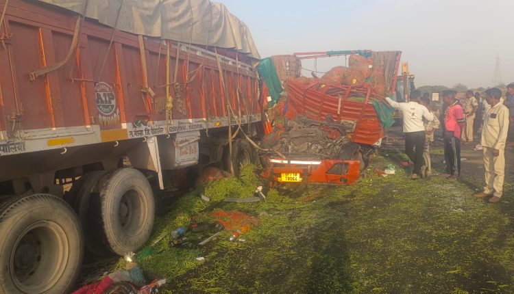 2 ट्रको की आमने – सामने हुई जोरदार भिड़ंत में 1 की मौके पर मौत, 1 गंभीर घायल
