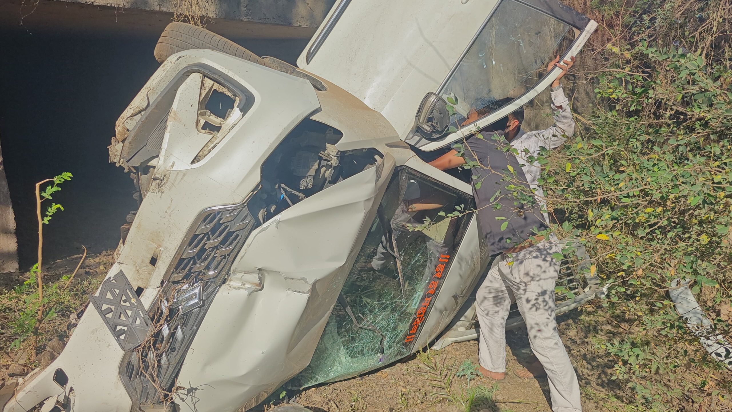 जानकारी के अनुसार, कार में महिलाएं और बच्चे सहित सभी लोग एक ही परिवार के थे। सुबह करीब 6 बजे हनुमान मंदिर के सामने अचानक कार अनियंत्रित होकर पुल से नीचे जा गिरी और पलट गई, जिससे मौके पर अफरा-तफरी मच गई।