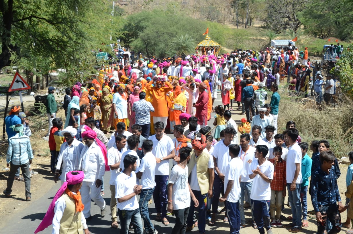 कथा आरंभ करने से पुर्व आज ग्राम झुमका के कलिकुठार हनुमान मंदिर से ढोल मांदल के साथ नाचते गाते हुवे विशाल व भव्य कलश यात्रा आरंभ हुई। इससे पुर्व पण्डित कमलकिशोर नागर जी ने मंदिर मे दर्शन के साथ पुजन अर्चन किया । करिब एक किलो मीटर से भी ज्यादा बडी कलश यात्रा मे  सैकडो कि तादाद मे महिलाए अपने सिर पर कलश लिए चल रही थी। वही अंचल कि परंपरा अनुसार पुरष वर्ग भी एक जेसी ड्रेसकोड मे पगडी बांधे तीर कमान लेकर आगे आगे चल रहे थे। साथ ही नागर जी भी बेल गाडी मे सवार होकर चल रहे थै। कथा स्थल पर पहुचने के बाद नागरजी ने उपस्थित श्रद्धालुओ को भजन व प्रवचन के माध्यम से कथा का श्रवण करवाया । कथा के समापन के बाद मे आरती कि गई। इस अवसर पर क्षेत्र के गणमान्य नगारीक सहीत दुरदाराज से आए हुए हजारो कि तादाद मे श्रद्धालु जन उपस्थित थे।